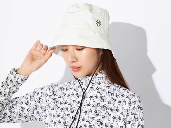裏コーティング生地のレインハット。シンプルデザインで、着る服を選びません。