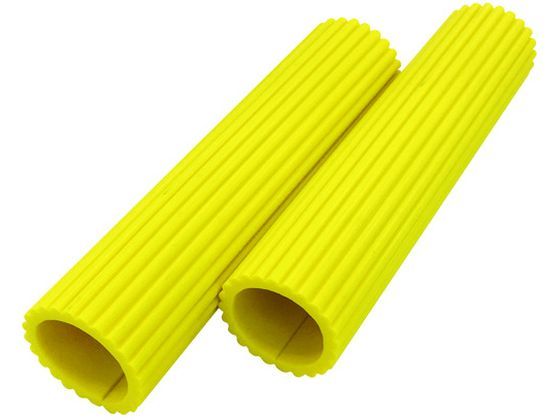 【商品説明】●ハンドル部分のグリップ向上、すべり止めとして使えます。●防汚仕様なので汚れがつきにくいです。●鉄製ハンドルの冷え防止としても使えます。●持ち手の色分けで安全対策「ココ持て」の活動として使えます。【仕様】●型番:BGR-25YE ●入数:2本 ●色:イエロー ●内径(mm):25 ●長さ(mm):150 ●スリット入り ●取付方法:貼付タイプ(両面テープ付属) ●エラストマー ●両面テープ