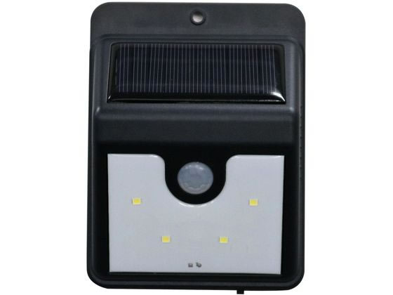 【商品説明】光源4個でも明るく照らす。 ソーラーパネル充電で電気代も面倒な配線も不要。 明暗・人感センサー搭載、暗くなったら自動点灯。 動作感知機能付き(モーションセンサー機能)で防犯対策に使えます。【仕様】●カラー:ブラック ●商品本体サイズ:幅8.6×奥行11.6×高さ4.2cm ●商品重量:115g ●材質:ABS樹脂他 ●明るさ:最大60ルーメン ●連続点灯時間:約10時間(弱点灯:8時間充電時) ●センサー反応距離:約3m、120度 ●センサー反応時の点灯時間:約30秒 ●付属品:粘着シール×1枚、固定ネジ×2本、ボードアンカー×2本