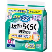 【商品説明】上げ下げらくらくで自分でもはきやすい!初めての方にもおすすめ! ・腰周りがらくに広がりおしりに引っかからない。 ・指かけポケットに指がかかるから、弱い握力でもつかみやすい。だから、軽い力でスルッと上がる。 青色の目印線でパッドがつけやすい。 アンモニア臭を強力消臭。 全面通気性でムレにくい。 すっきりうす型で動きやすい。 しっかり2回吸収。 医療費控除対象品【仕様】●リリーフパンツタイプ上げ下げらくらくうす型パンツ・お試しパック ●仕様:大人用紙パンツ・男女共用 ●初めての方用 ●吸収回数の目安:2回分(1回の排尿量150mlとして) ●サイズ:M−L ●ウエストサイズ:60〜90cm ●強力消臭 ●パッド目印線付き・青色 ●日本製 ●医療費控除対象品 ●注文単位:1パック(2枚)