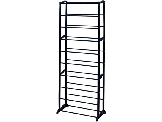 【商品説明】組立簡単。最大30足収納可能!(※靴の種類・サイズによります)【仕様】●カラー:ブラック●段数:10段●サイズ(約):幅505×奥行160×高さ1400mm●重量:約1.3kg●耐荷重量:約15kg(1段あたり1.5kgまで)●材質:スチール、ポリプロピレン●注文単位:1台