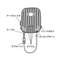 【商品説明】ワイヤーが約1.8m伸ばせる巻き取り式ダイヤル錠です。暗証番号を4桁で設定できます。設定した暗証番号にすれば、何度でも再設定できます。ワイヤーを柱などに巻き付けてカバンなどを盗難から守ります。SLE−14P(別売)と組み合わせれば、パソコン用セキュリティにもなります。【仕様】●サイズ:W63×D24×H93.6mm(突起部除く)、W67.8×D24×H102.3mm(突起部含む) ●ケーブル長:1.8m ●ケーブル直径:約2mm ●ケーブルヘッド直径:6.3mm ●材質:本体/ABS樹脂、ワイヤー/中はステンレス、外はPVC