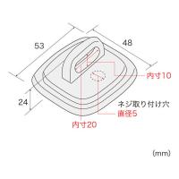 【商品説明】デスクトップパソコン、ディスプレイ、ラックの木製天板などに取り付ける部品です。【仕様】●サイズ:外寸/W48×D53×H24mm、穴内寸/W20×H10mm ●重量:40g ●材質:本体/亜鉛合金、裏面両面テープのスポンジ/EVAスポンジ、ネジ/亜鉛メッキ