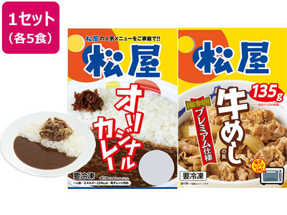 【商品説明】松屋の大人気定番メニュー『カレギュウ』がご家庭で楽しめる『松屋 牛めしの具(プレミアム仕様)』と『松屋オリジナルカレー』のセットです。もちろんカレーとしても、あったかいごはんにのせて牛めしにしても楽しめるお得なセットです。レンジで簡単調理なので忙しい時にはとっても嬉しい味方です。【仕様】●内容量:10個(牛めしの具135g×5袋、オリジナルカレー180g×5個)●賞味期限:製造日より365日●冷凍にて配送