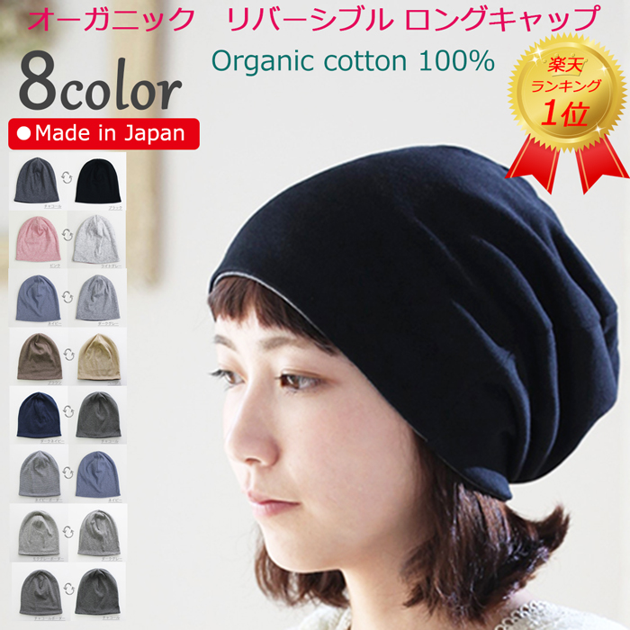 医療用帽子 秋冬用 オーガニックリバーシブルロングキャップ 日本製 メンズ レディース 抗がん剤副作用 脱毛 手術後用ケア帽子