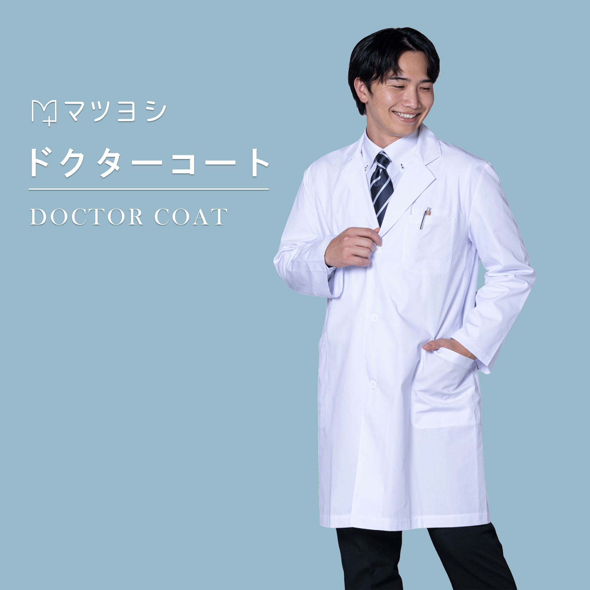 ドクターコート マツヨシ 白衣 長袖 男性用 S M L LL 3L 5サイズ メンズ 診察衣 医療 看護 クリニック 医師 医者 研修 研修医 実習 実験 メンズコート