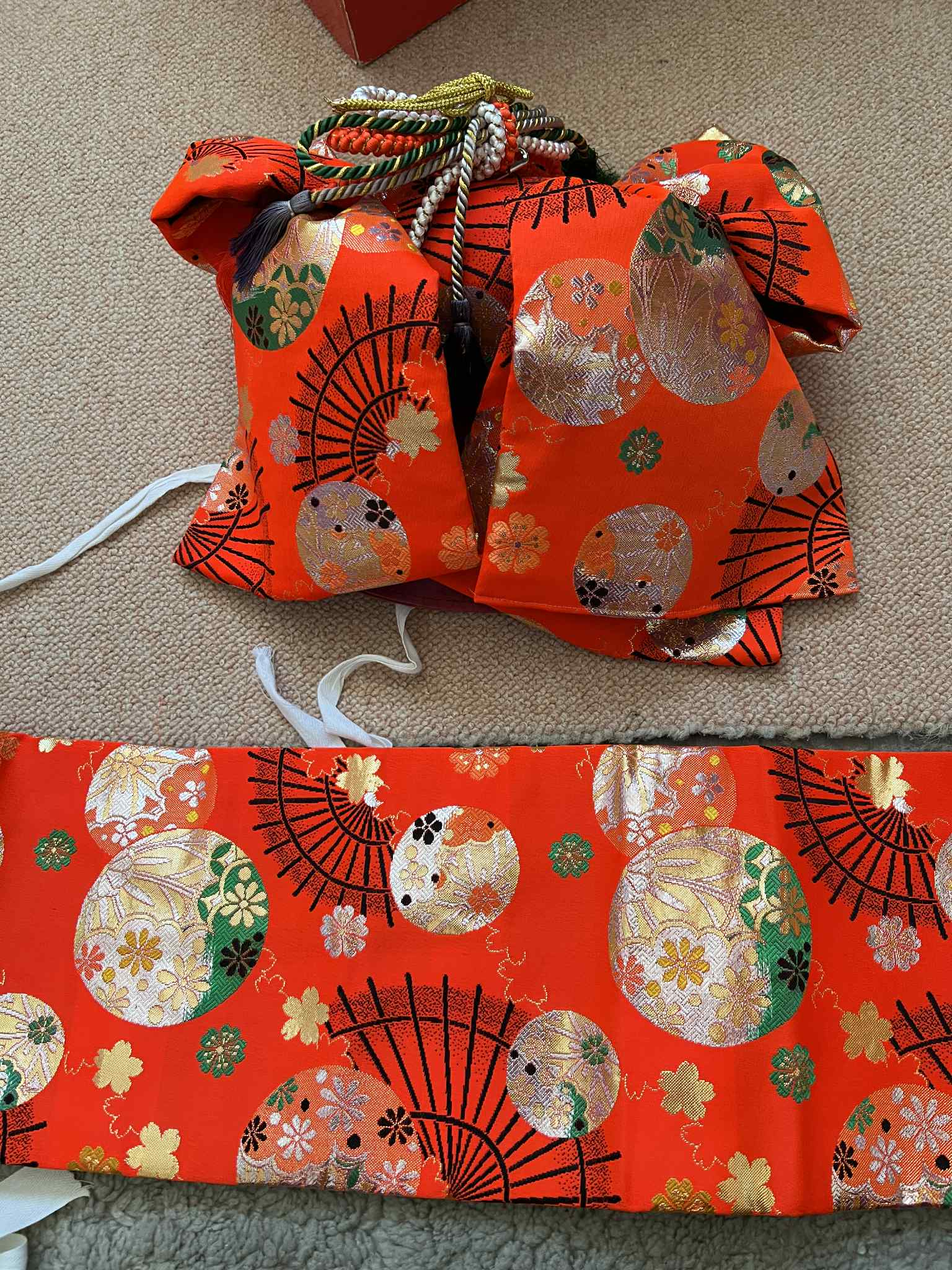 貸衣処分品 753 753 7歳 帯 つけ帯 オレンジ 幅18cm 長さ88cm
