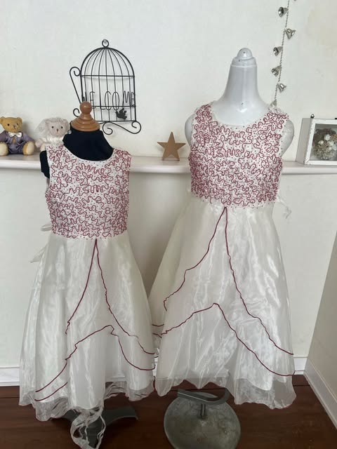 貸衣処分品女児ドレス女児ドレス3枚です 白110cm 100cm と1歳 かなり破れています
