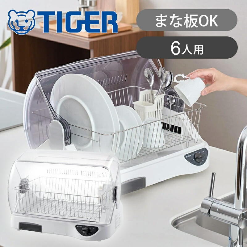 タイガー魔法瓶 食器乾燥器 6人分 DHG-T401WY Ag抗菌加工フィルター 水受け タイマー 60分 省スペース コンパクト設計 熱風乾燥 食器乾燥機 DHGT401WY|