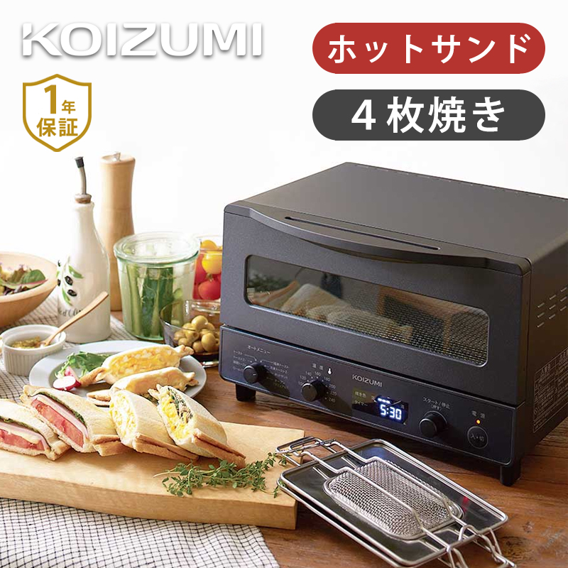[正規品]コイズミ 4枚焼き オーブントースター KOS-1236/K おしゃれ トースター マイコン ホットサンド 4枚 1200W 温度 調整 KOS1236K||