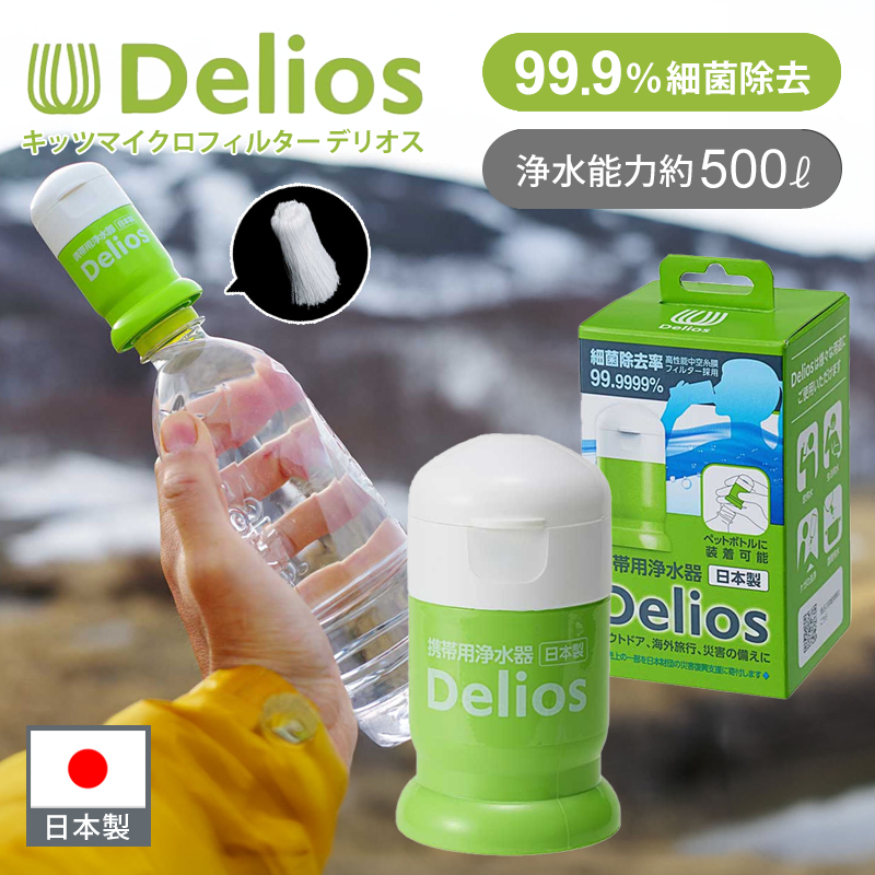 デリオス 携帯型浄水器 携帯用浄水器 細菌除去 持ち運び 防災 災害 飲み水確保 アウトドア キャンプ ペットボトル 取付 キッツマイクロフィルター SD9C2|||||