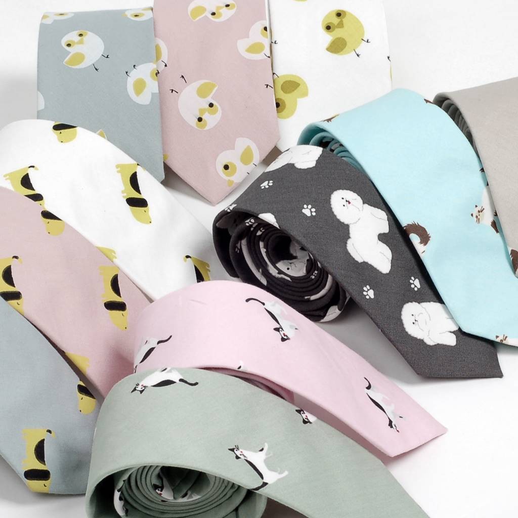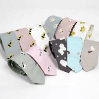 ネクタイ スリム ナロータイ かわいい 動物 プリント コットン メンズ レディース マットな質感 パステルカラー ひよこ、いぬ、ねこ、たぬき、子犬 イラスト