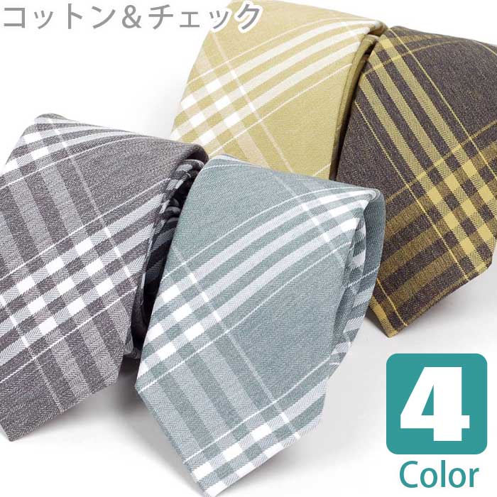 ネクタイ メンズ チェック柄 パステルカラー コットン素材 おしゃれ 淡い色でクールな感じのファッション・ネクタイ 大剣幅 6cm スリム・ナロータイ