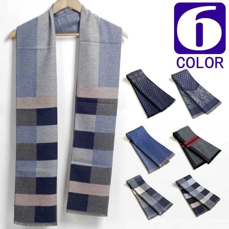 [秋冬] ストール マフラー カシミヤタッチ メンズ ネック スカーフ ドット柄 チェック柄 細長スカーフ ロング フリンジ ストール 6色 180x30cm