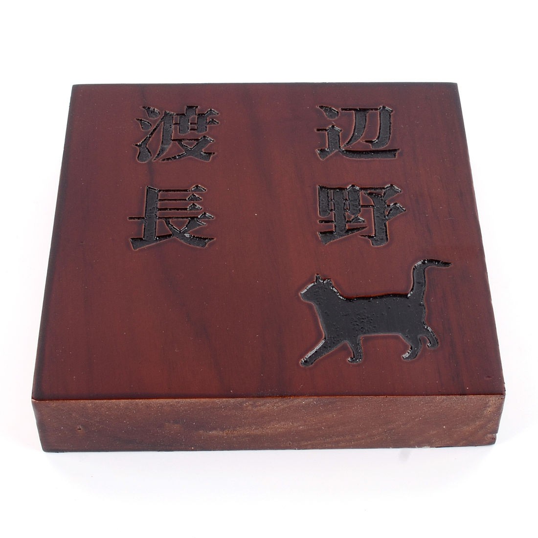 表札のアトリエ 天然木 150x150x30mm ダークブラウン にゃんこと一緒 二世帯用 墨入れニス仕上げ全て込み 横型