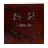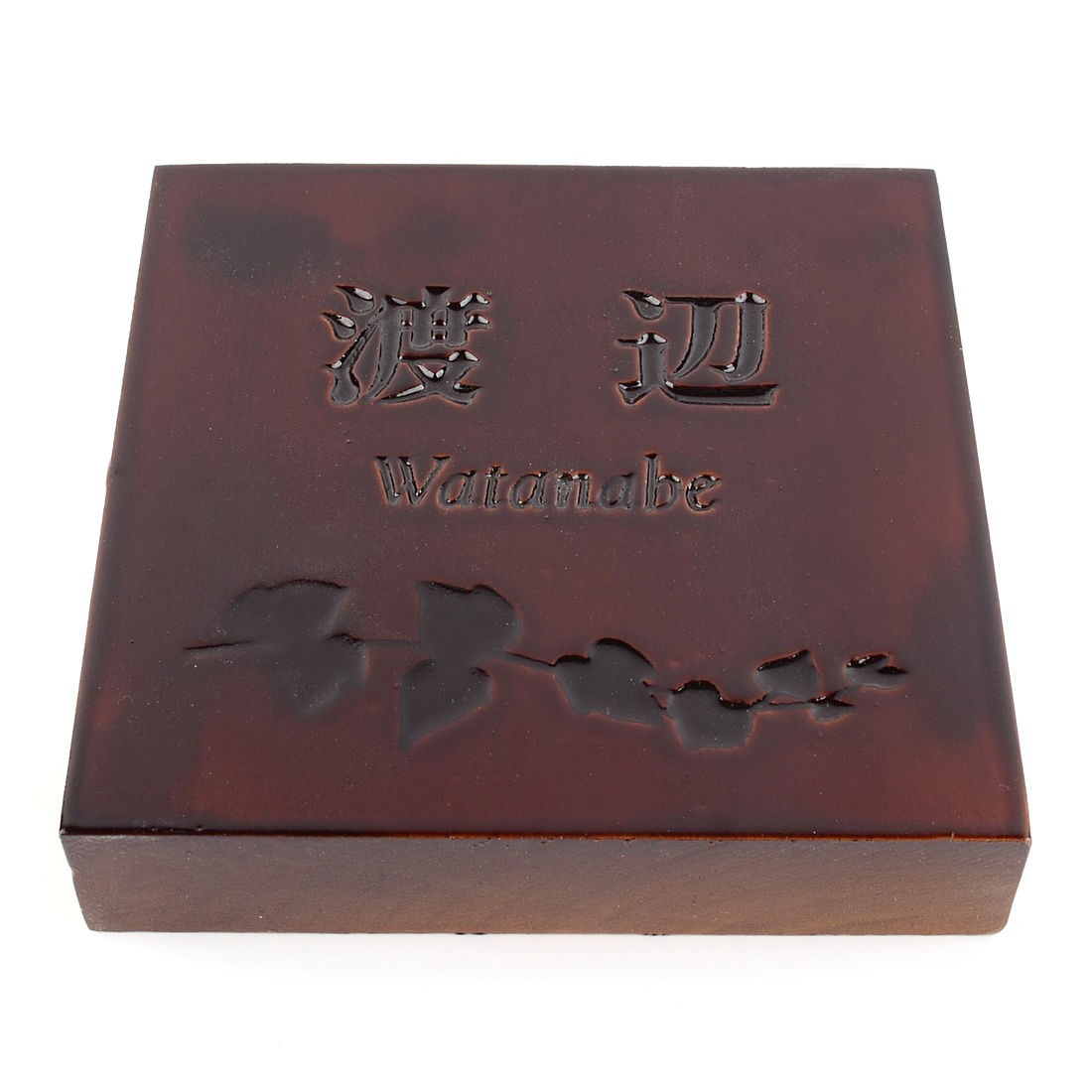 表札のアトリエ 天然木 150x150x30mm ダークブラウン アイビー2 墨入れニス仕上げ全て込み 横型