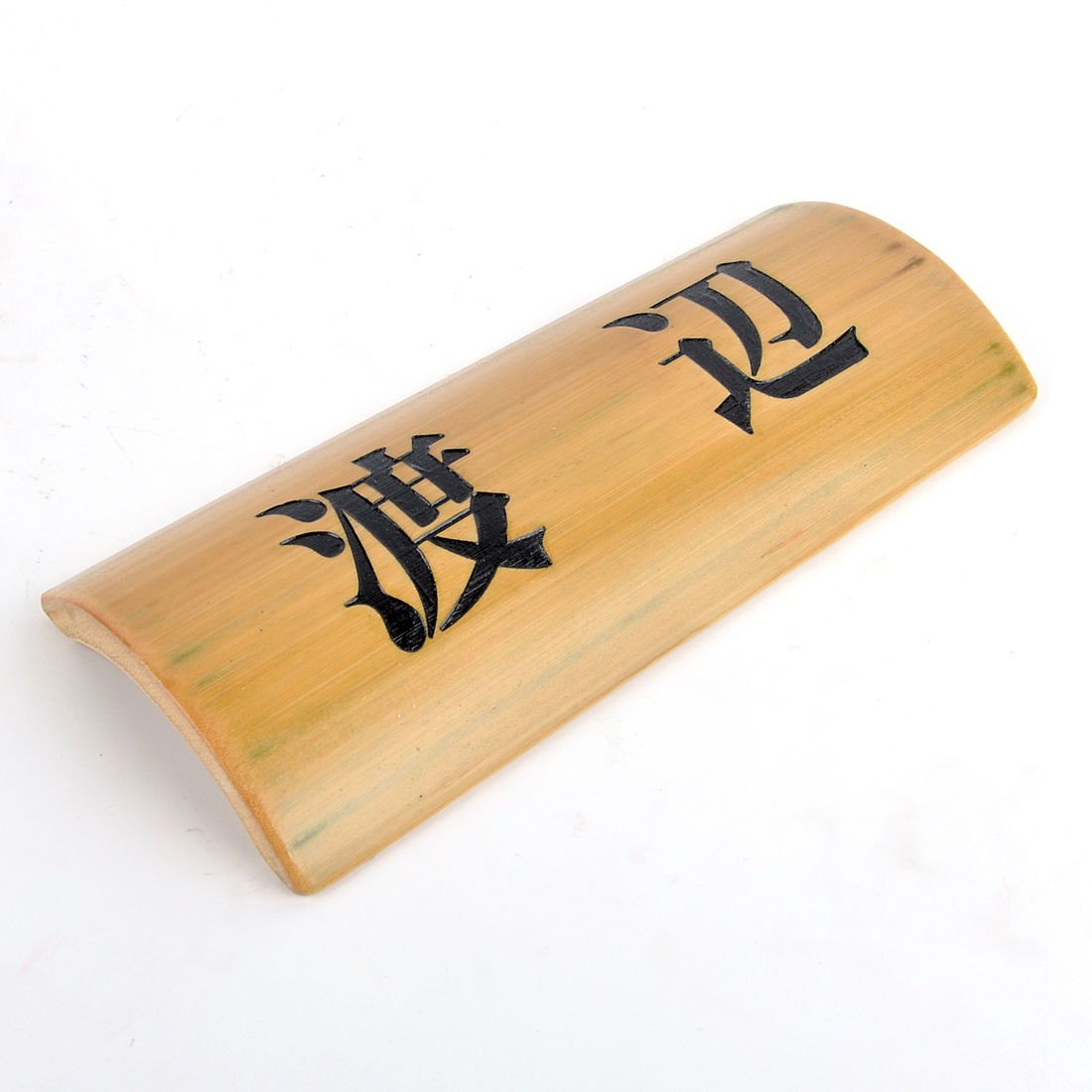 表札のアトリエ 天然木 立体型竹表札 シンプル 横型 210x88mm 墨入れニス仕上げ全て込み