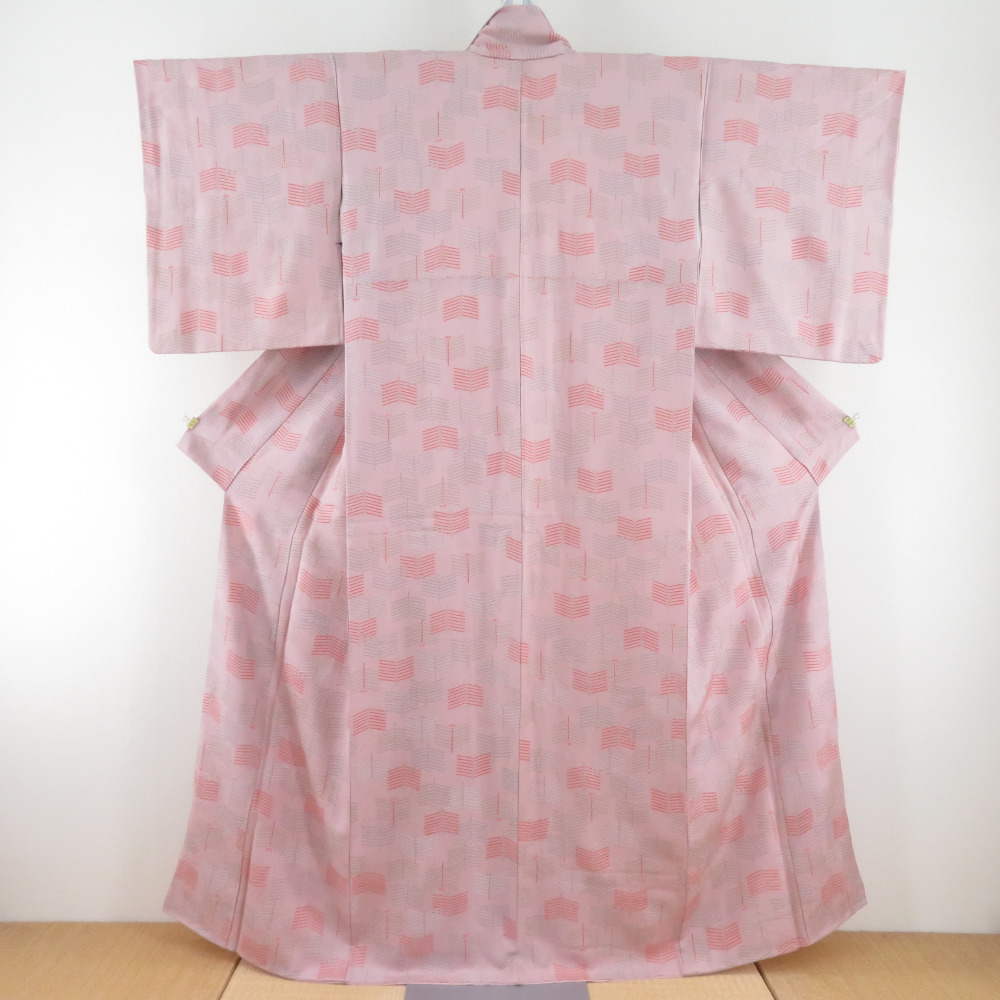 小紋 松葉文様 袷 広衿 薄紫色 正絹 仕立て上がり カジュアル着物 身丈157cm
