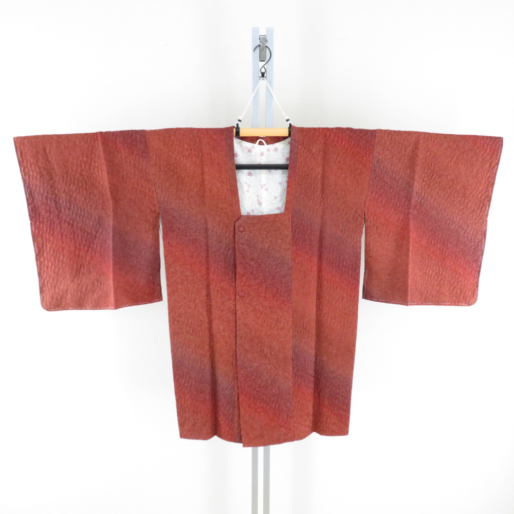 道行 正絹 膨れ ぼかし文様 赤茶色 和装コート 着物用 ちりよけ カジュアル 丹後ちりめん 身丈86cm
