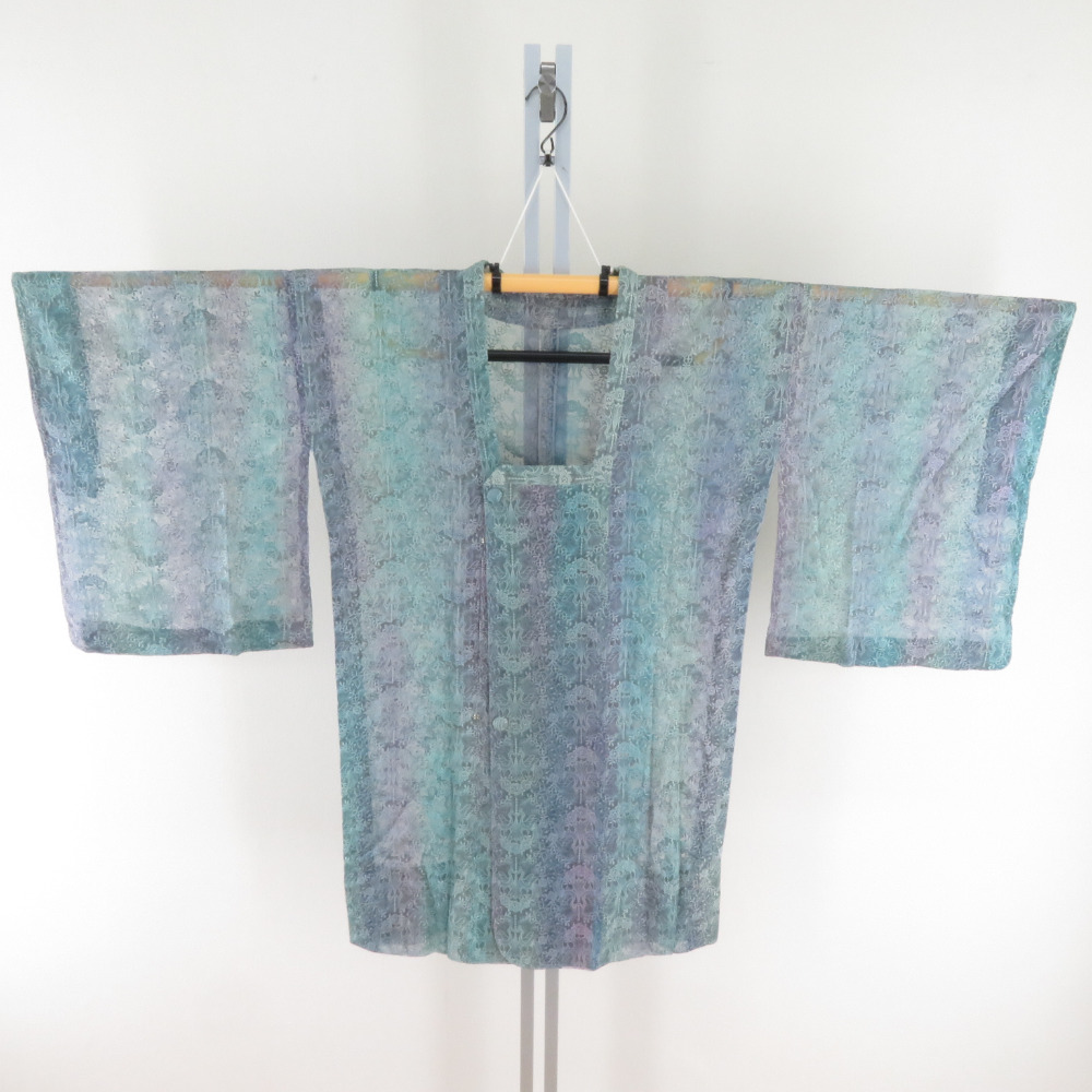 道行 レース織り 夏用 ぼかし 花ブーケ柄 緑青紫 正絹 着物コート 単衣 和装用 ちりよけ 身丈91cm