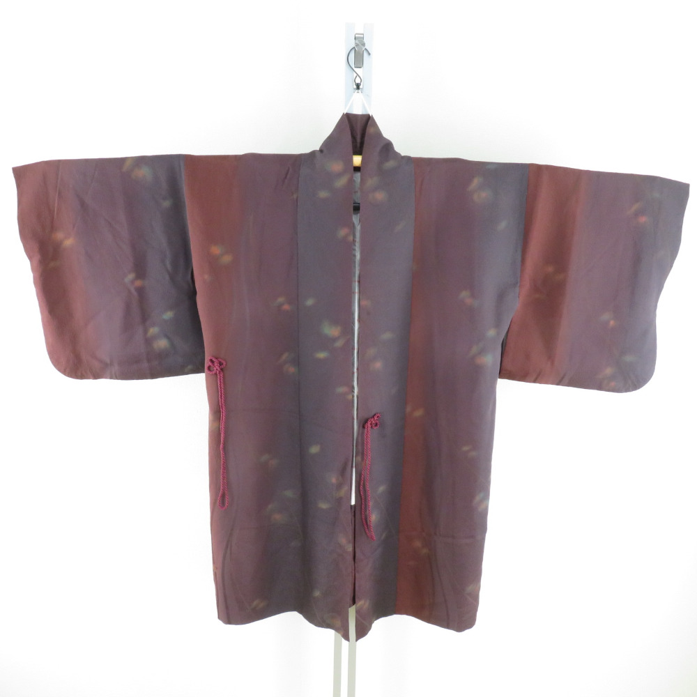 着物コート 道中着 ぼかし 枝花文様 紫色 茶色 正絹 和装コート カジュアル ちりよけ 身丈102cm