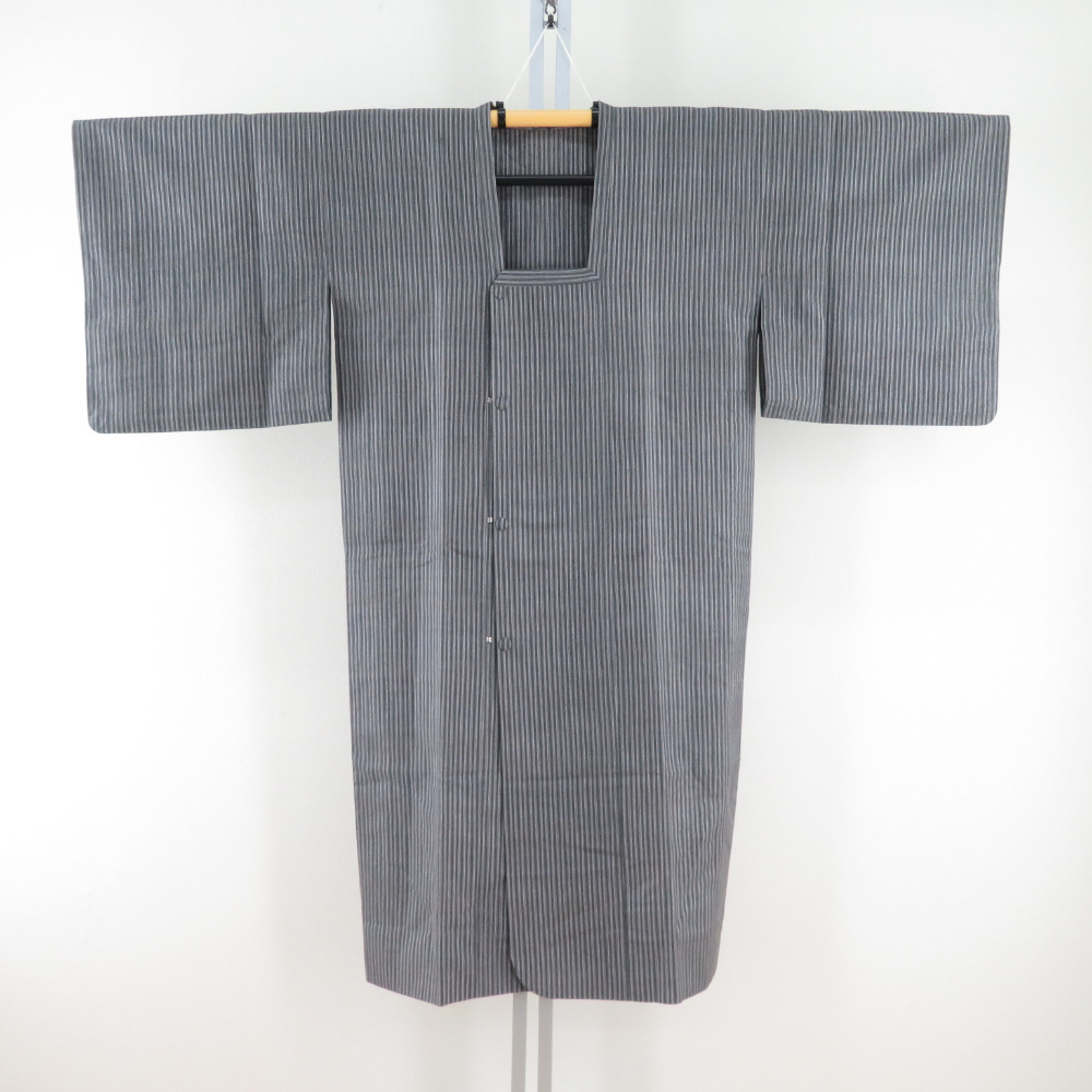 道行 紬 グレーx薄ピンク 縞模様 正絹 着物コート 和装用 ちりよけ 身丈120cm