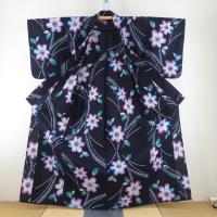 浴衣 女性ゆかた 紺色x多色 花模様 ぼかし染め コーマ地 綿 夏物 レディース 仕立て上がり 身丈163cm