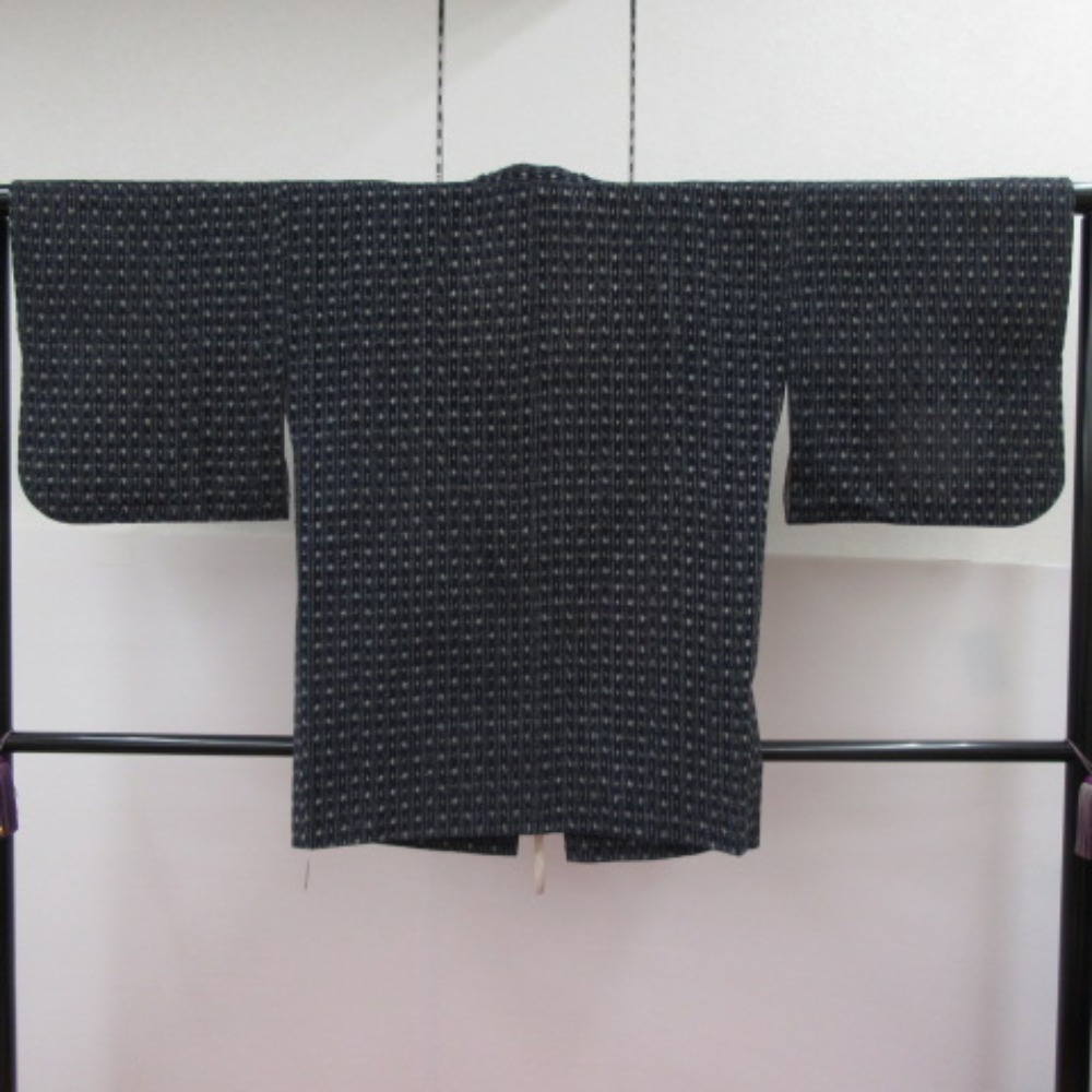 道行・雨コート 紺 絣調 リメイク用 交織 肩身丈79cm