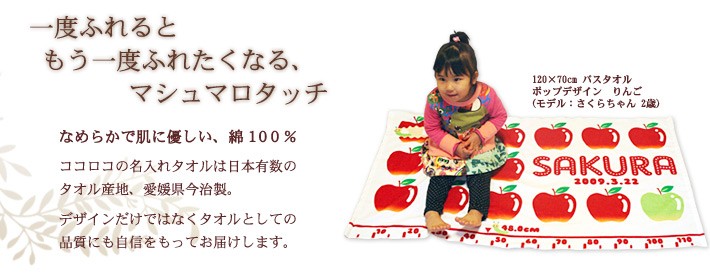 【約30営業日出荷】 出産祝い 名入れ 名前入り バスタオル 男の子 女の子 おしゃれ お七夜 100日祝い 今治 日本製 ブランケット プレゼント りんご アップル