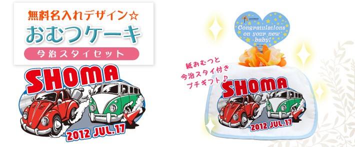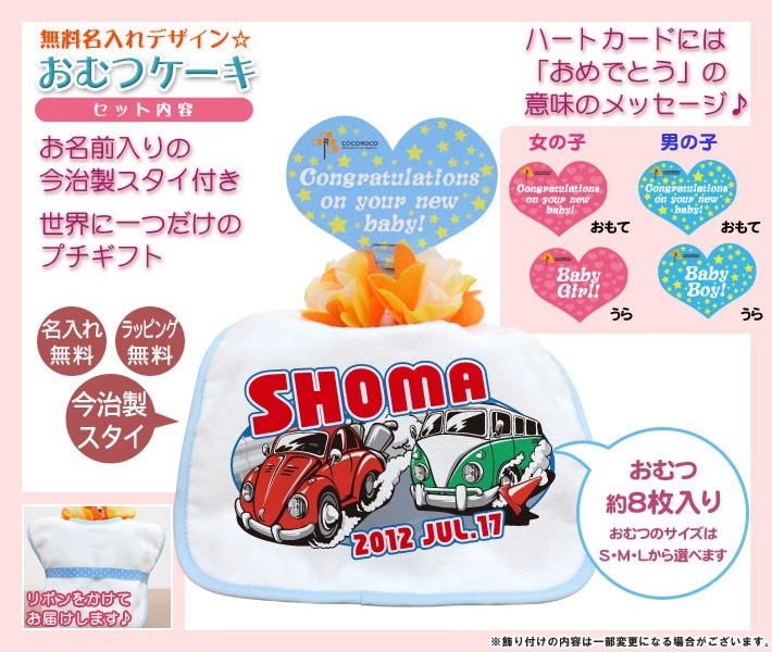 出産祝い 名入れ おむつケーキ オムツケーキ名前入り スタイ 日本製 今治 プレゼント ギフト 1段 車 カーレース
