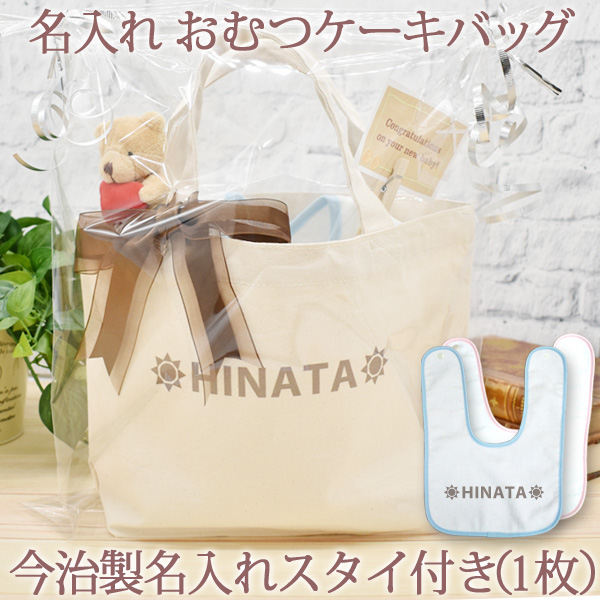 出産祝い おむつケーキ 男の子 女の子 名入れ おむつケーキバッグ シンプルデザイン 名前入り トート&スタイ 日本製 今治 プレゼント ギフトセット