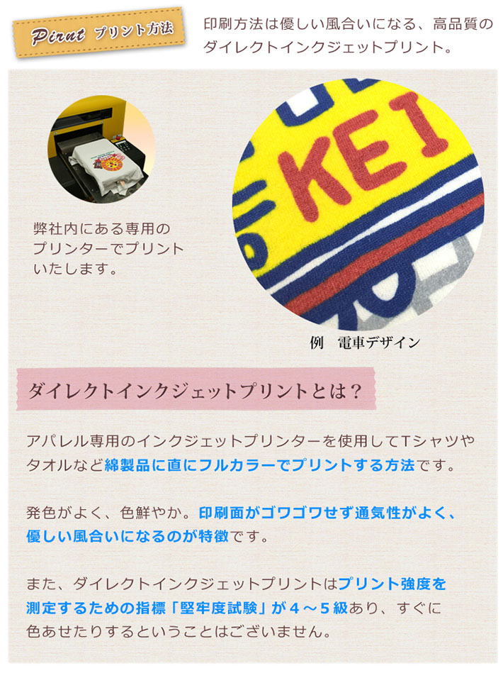 ■ビブのタオル地の表面はパイル部分を短くカットするベルベット調の加工で、なめらかさとつややかさがあり、糸をひっかけにくく扱いやすくなっております。この加工により、プリントが通常の物より鮮明に出るようになり、やわらかな肌触りと吸水性も高くなっています。