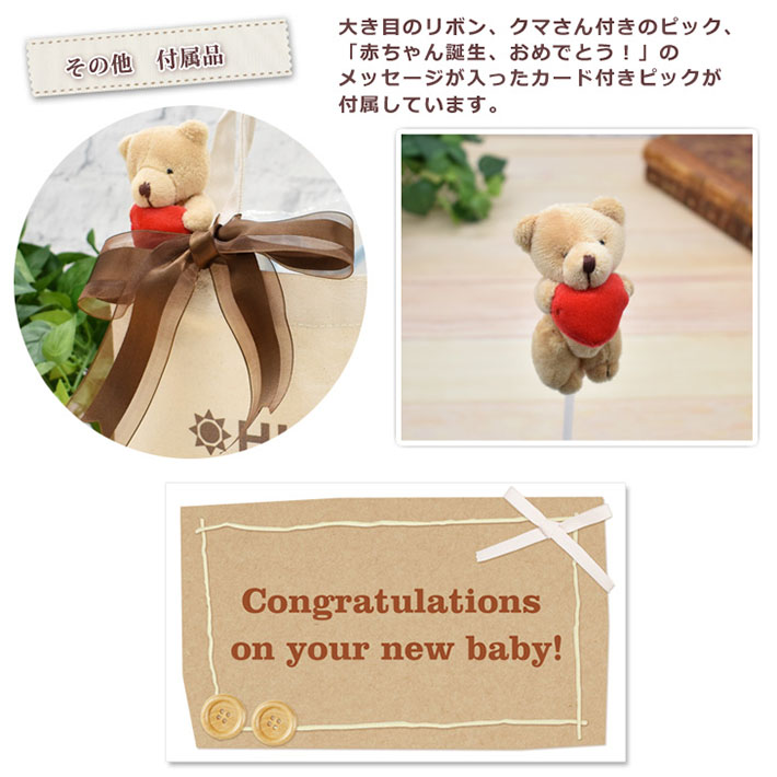 ●バッグと付属のよだれかけに名前が入るので特別感のある一点モノ!くまさんピックやリボンでデコレーションしてお届けします