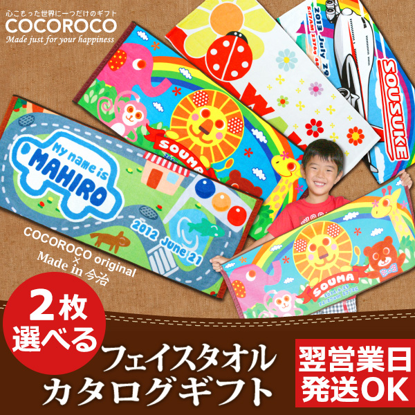 出産祝い カタログギフト 贈り物 名入れ 名前入り おしゃれ 男の子 女の子 双子 今治製 フェイスタオル 日本製 お仕立て券 出産内祝 プレゼント 2枚選べる