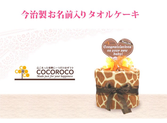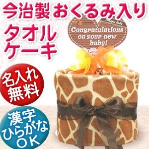 出産祝い 名入れ 名前入り タオルケーキ 今治 おくるみ付き おむつケーキ風 きりん模様 きりん柄