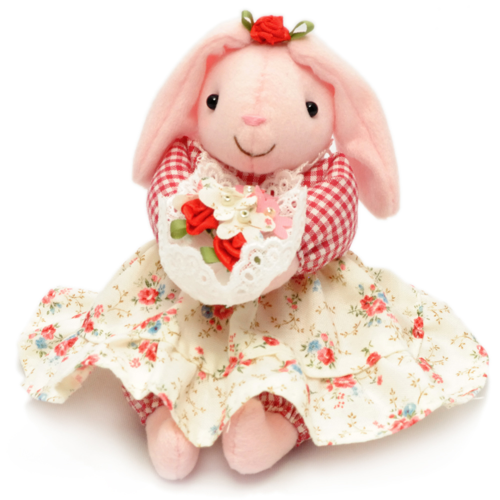 【手芸キット】小さなぬいぐるみ おすわり花うさぎ ほんのりピンク他