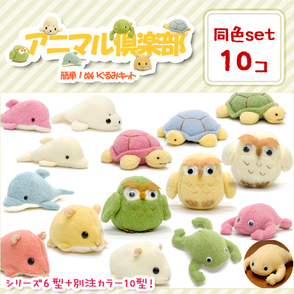 【同型同色10個セット】【手芸キット】動物ぬいぐるみ:アニマル倶楽部 夏休み子供手芸に人気 作り方説明書付 生地は型抜き済み 綿・ペレット付