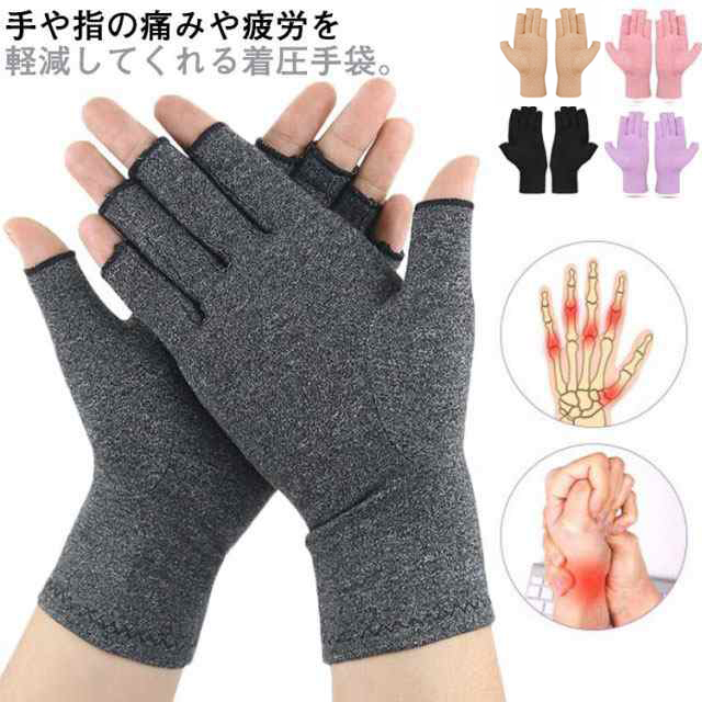 | 関節炎・腱鞘炎・リウマチ・バネ指など一役♪手や指の痛みや疲労を軽減してくれる着圧手袋。 適度な圧力とフィット感で血液の循環を促し、手指を優しくサポート。 デスクワークやスマホの使いすぎ、家事や育児、運転などによる手首の痛みや指の固まりなど悩みを解決してくれる優れもの。 手首までしっかり包みこむ長さ、手首の痛みや手の冷え予防にも◎ 指抜きタイプなので、パソコンやスマホなど細かな日常操作もしやすい。 春、夏、秋、冬のオールシーズン使える生地を採用します。 | |