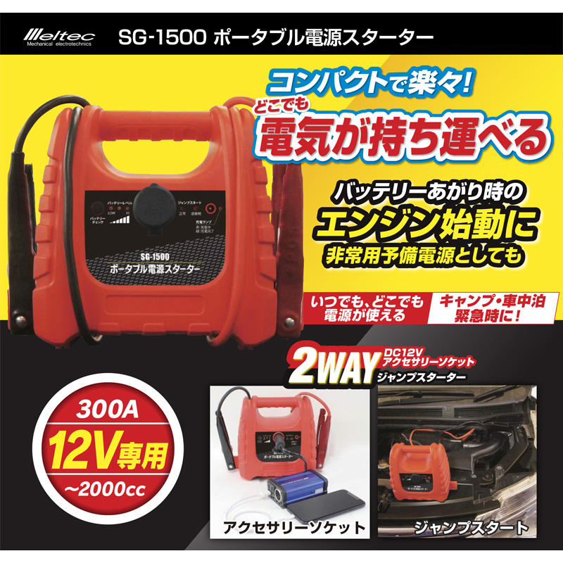 Meltec(メルテック) ポータブル電源スターター |  Meltec(メルテック) ジャッキアタッチメントサイドリフトアップ用 |  Meltec(メルテック) ブースタークリップ (カバー付) 黒 100A |