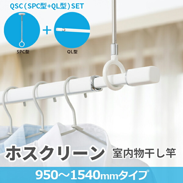 ホスクリーン 室内用物干竿 QL型 セット品 (QL-15-W 1本+SPCS-W 2本)