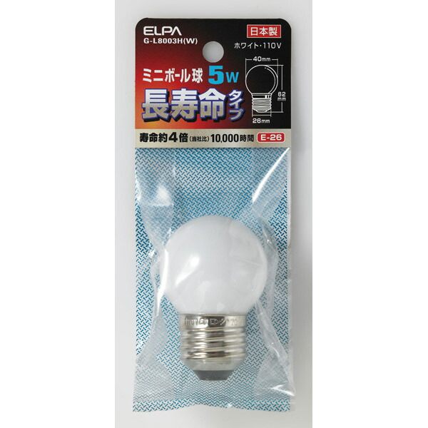ELPA(エルパ):ミニボール球G405WE26Wロング G-L8003H(W)
