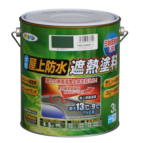 アサヒペン 水性屋上防水遮熱塗料 3L ダークグリーン 4970925437624
