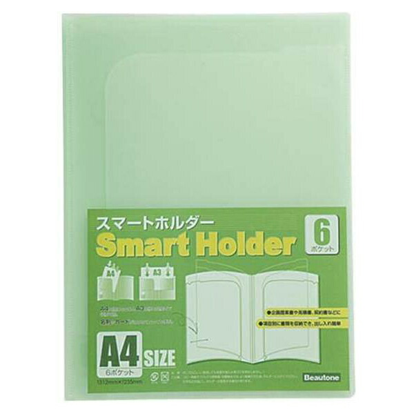 ビュートンジャパン スマートホルダー A4判タテ型/A3判ヨコ型兼用 (6ポケット) ライトグリーン NSH-A4-6CLG NSH-A4-6CLG