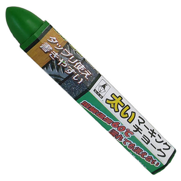 溶解温度60度、濡れても消えない太いマーキングチョークです。