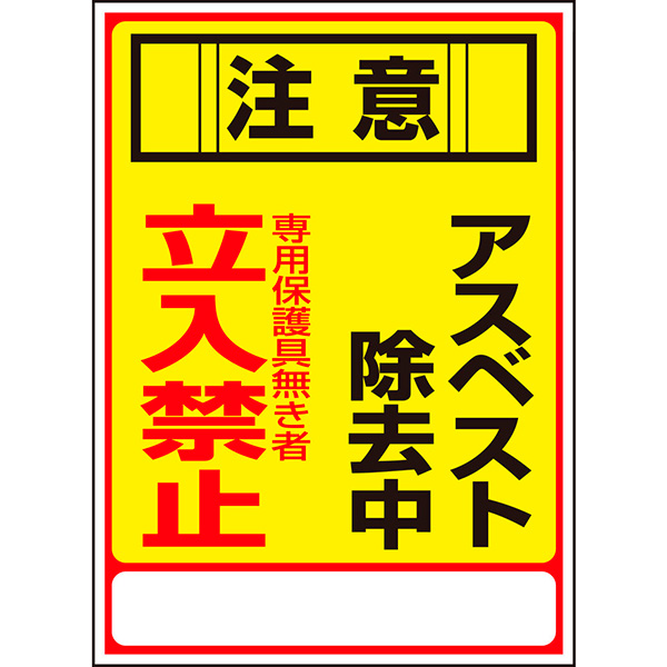 アスベスト(石綿)関係標識 注意・アスベスト除去中・立入禁止 アスベスト−28 350×250mm 033028(メーカー直送品) 日本緑十字社