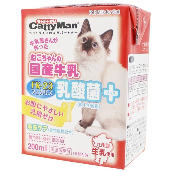 ドギーマンハヤシ:ねこちゃんの国産牛乳 乳酸菌プラス 200ml 4974926010503 キャティーマン フード 牛乳 生乳 ミルク 国産