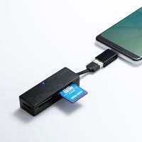 【特長】Type-CのスマートフォンやタブレットPCのOTG(USBホスト)機能に対応したカードリーダーです。※USBホスト機能に対応していないスマートフォン・タブレットには対応していません。Type C-USB A変換のアダプタ付きです。USB2.0カードリーダーとしても使用できます。持ち運びに便利なケーブル収納カードリーダーです。付属のUSBケーブルはUSBホストケーブルとして使用できるのでUSBメモリやマウスなどのUSB機器を接続することができます。※対応フォーマットはスマートフォン・タブレットの仕様に準じます。※複数のパーティションに分けた場合はプライマリパーティションしか認識しません。LED付で動作状態がひとめでわかります。【仕様】□インターフェース規格:USB Ver.2.0準拠(USB Ver.1.1上位互換)※USB2.0機器として使用するためにはUSB2.0対応のホストアダプタかUSB2.0対応のポートを搭載した機器でなくてはなりません。※Mac OSではUSB2.0対応のホストアダプタかUSB2.0対応のポートを搭載しOS10.2.7以降