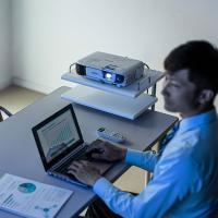 中棚にプロジェクターを置き、天板に置いたノートPCを操作することも可能です。