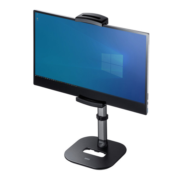 15.8インチまでのモバイルモニターやタブレットの取り付けに対応した、高さ調節ができるデスクトップスタンドです。(対応サイズ235mmまで)伸縮アームによりモバイルモニターの高さを調節できるので、目線の位置やノートパソコンの画面上の位置にセットできます。ボールジョイント構造によりホルダー部が360度回転できるので、縦向きでも横向きでも使用可能です。上下左右の角度調節にも対応し、設置機器を垂直にセットして使用することができるため、モバイルモニターの設置に最適です。アーム部分には接続した充電ケーブルを固定することができるケーブルホルダー付きです。●15.8インチまでのモバイルモニターやタブレットの取り付けに対応した、高さ調節ができるデスクトップスタンドです。(対応サイズ235mmまで)●伸縮アームによりモバイルモニターの高さを調節できるので、目線の位置やノートパソコンの画面上の位置にセットできます。●ボールジョイント構造によりホルダー部が360度回転できるので、縦向きでも横向きでも使用可能です。●上下左右の角度調節にも対応し、設置機器を垂直にセットして使用することができるた