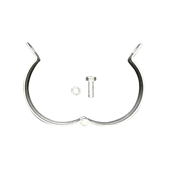 ●丸型パイプに使用可能な蝶番式鉄製の吊りバンドです。